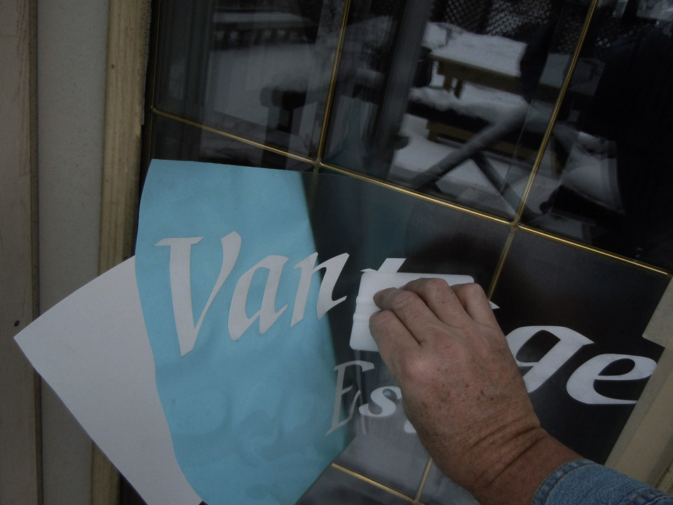 - Application of vinyl graphics to the inside of the window often requires moving displays and shelving, as well as disrupting store traffic. Moving merchandise and store fixtures around slows down the installation and adds to the cost of the application. Exterior applications, on the other hand, pose no inconvenience to business operation, and installers may apply them after hours.